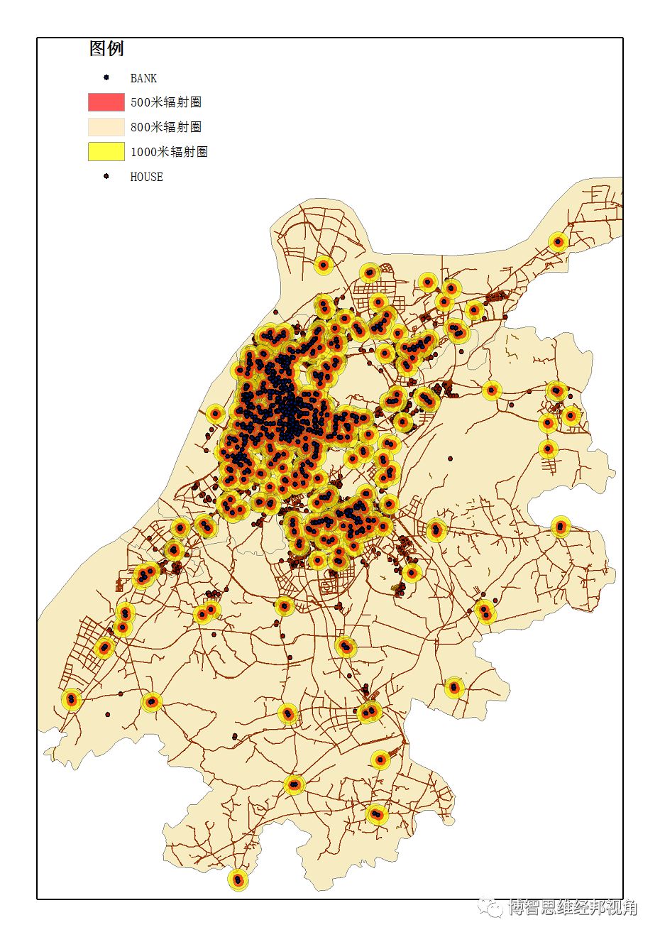 银行网点辐射圈示意图