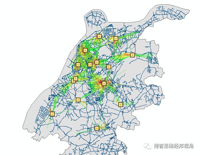 3、道路交通网络的建构:道路网点使用数据为2014年南京市道路数据,包括国道、省道、县道、市区一级道路、市区二级道路,但不包括乡村道路、行人道路、及其他无名路。