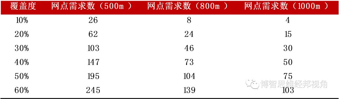全覆盖网点成本数量一览
