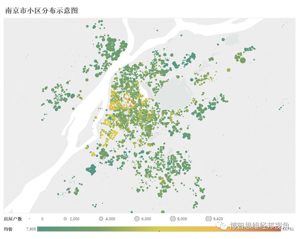 说明:使用数据采集时间为2018年3月,含4409个住宅小区,信息主要包括小区户数、均价、建筑年代等。人口统计方面,采用数据按户均2.8(南京市统计年鉴2017公布的户均人口)人计算,共计5896428人,与2016年该区与常住人口量级基本一致(按2016年南京市统计年鉴,上述区域总人口569.24万人)。
